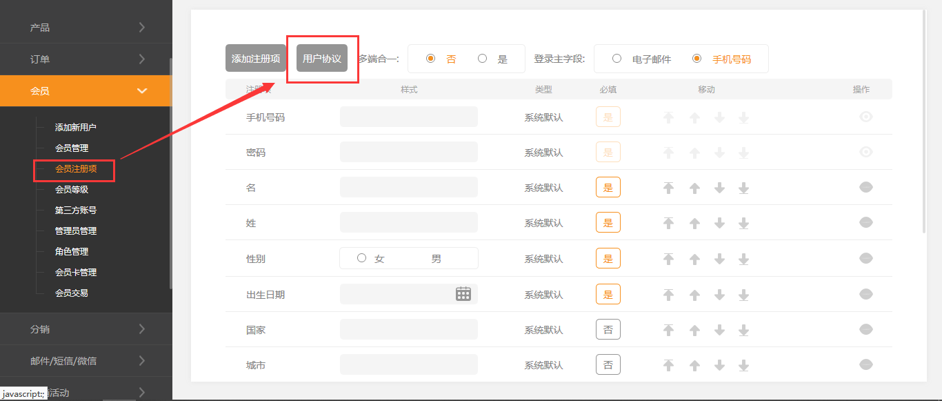 会员管理-会员注册项使用说明
