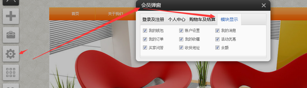 一、依次点击设置 -》会员弹窗-》会员模块把不需要显示的模块勾选去掉即可。