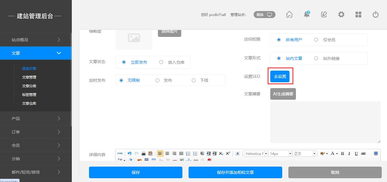 提示:必须要先填写文章详情内容,才能使用AI提取摘要功能,AI使用次数是根据免费的额度来定,超过需要单独购买